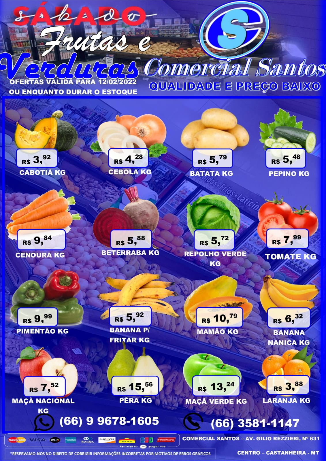 Itens necessários na cozinha de qualquer família, as frutas, verduras e carnes tem neste sábado preços mais acessíveis na Comercial Santos, na Gilio Rezieri, 631, no centro da cidade.